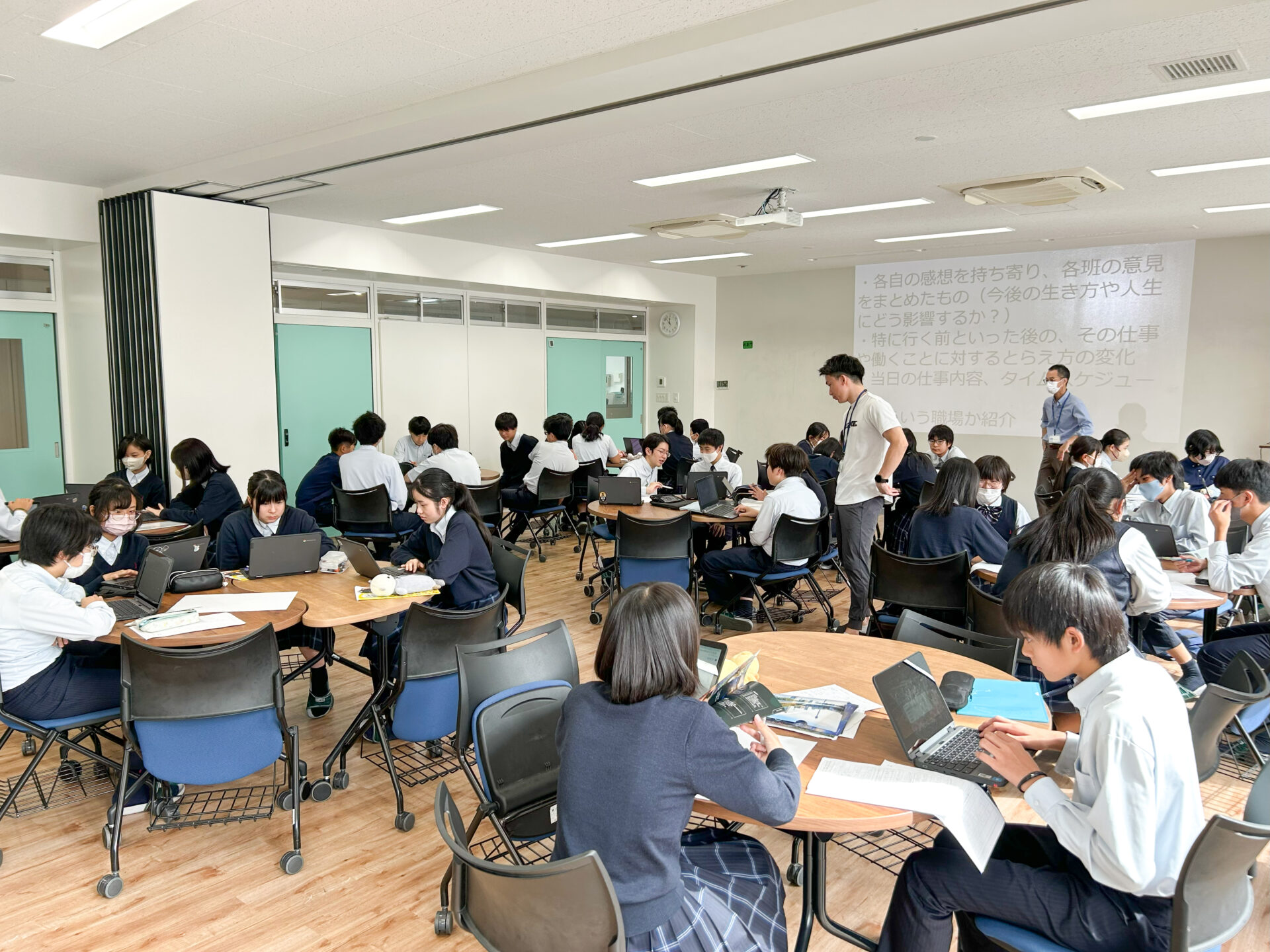 そして、この体験談を中学1年生に向けて発表をします。そのための発表原稿を考えていました。また、職場体験の内容をまとめたポスターも制作する予定なので、それについても構成を各職場に参加した生徒で協力して考えていました。