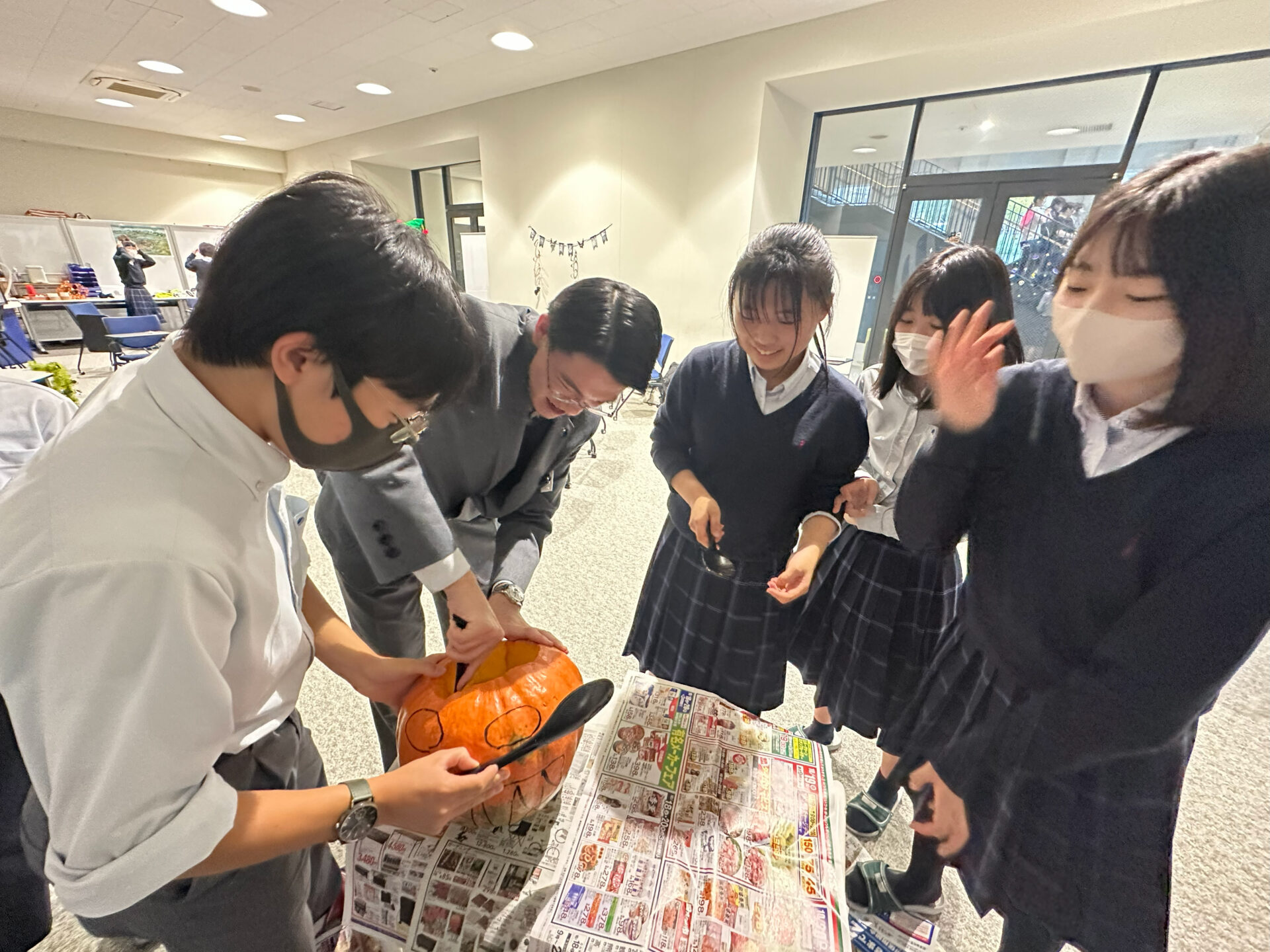 パーティの後半ではjack-o-lanternのカービング(カボチャのくり抜き)に挑戦したり、英語同好会が準備していたたくさんの衣装からそれぞれが思い思いの仮装をしたりと、ハロウィンの雰囲気を十分に感じ、楽しむことができたように思います。