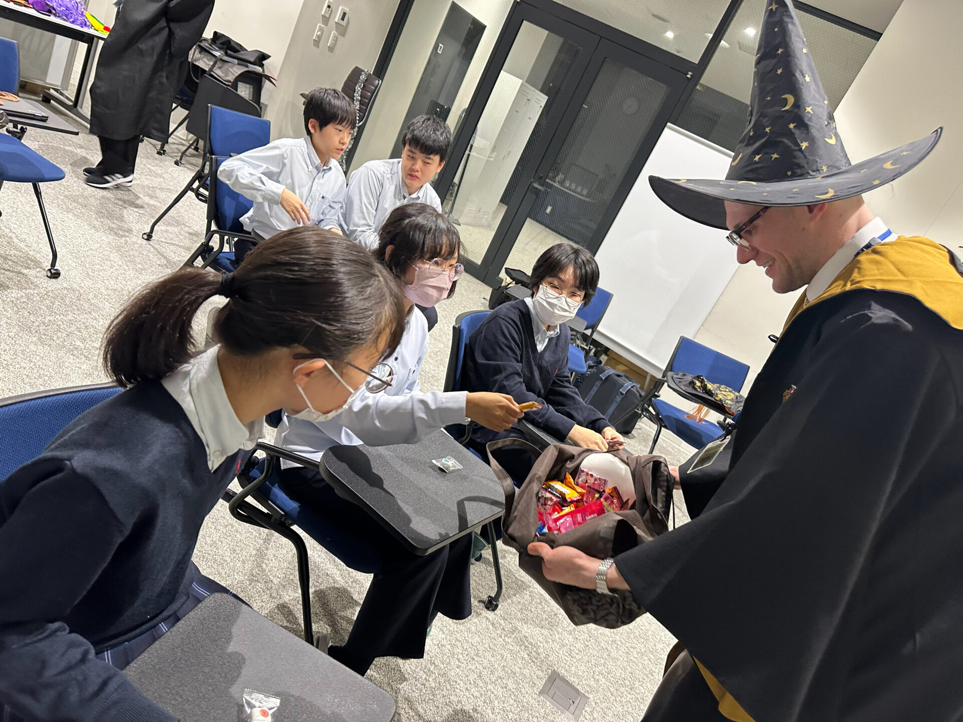 パーティではまず、Matt先生から「ハロウィンとは何だろう」というテーマで話があり、参加した生徒たちは日本の秋のイベントとハロウィンを比較しながら考えたり、「ハロウィンを楽しむこと」について議論を交わしたりと、異文化を知り、楽しむ時間を持つことができました。