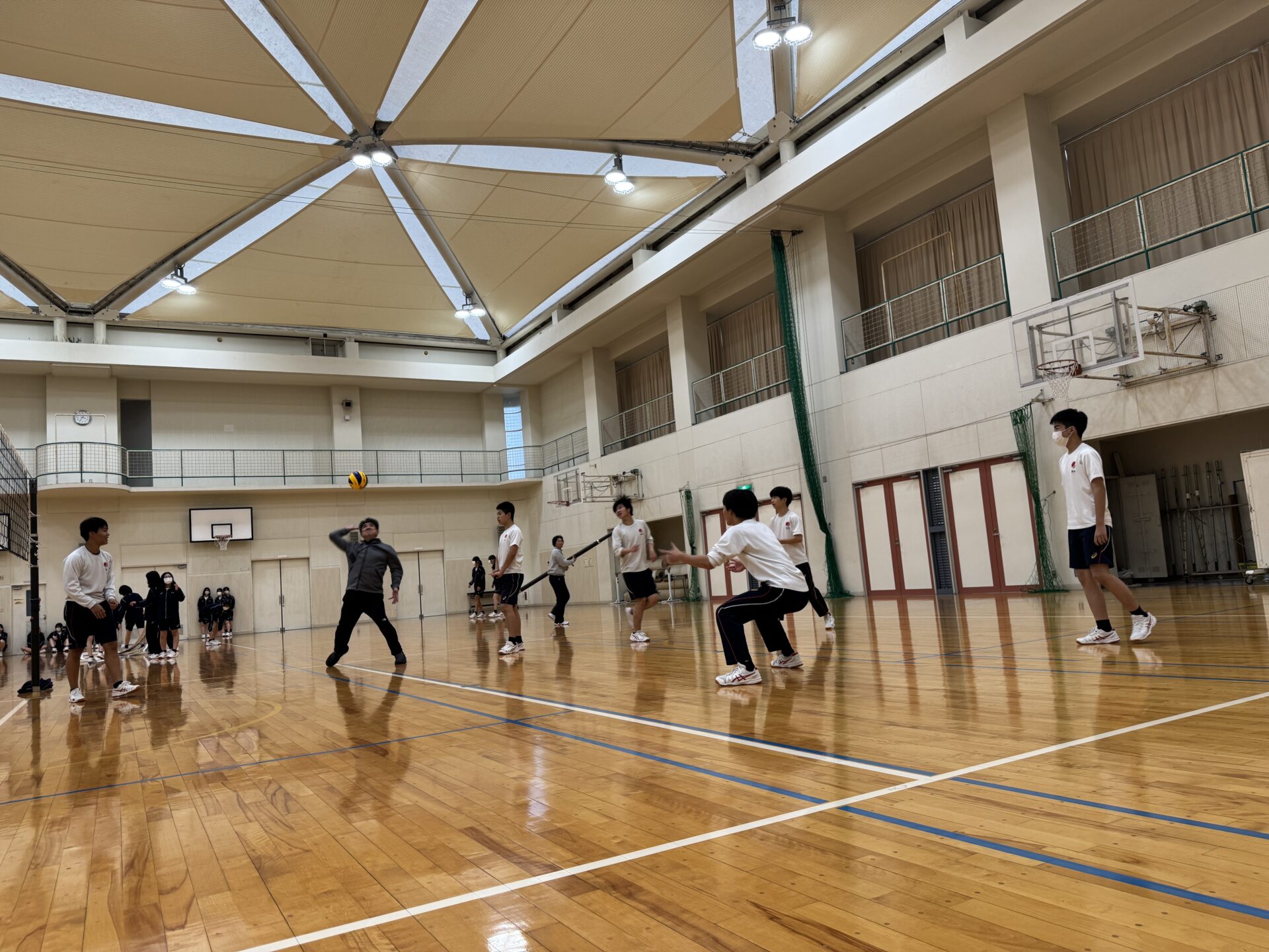 2025.11.05 学修 担当:西田 金曜日の7限が1番元気で 中学3年生金曜日の7限目は体育です。前回バレーのサーブのテストを行い今日は、ゲーム形式での実践でした。失敗しても声を出してカバー、綺麗に決まったスパイクはみんなで喜ぶ。なかなかうまくいかない時にはちょっとしたアドバイスなどコミュニケーションをとりながら体力の向上と健康の保持増進を目的として体育の授業が行われています。上手な人は先生からのちょっと強めのサーブから始まっていました。週末で疲れているとは思えないような光景でした。11月も授業や行事に全力で取り組んでいってほしいです。 2023年中学ブログはこちら 2022年中学ブログはこちら