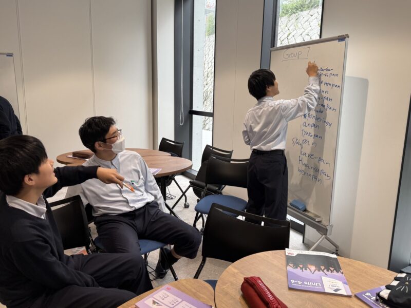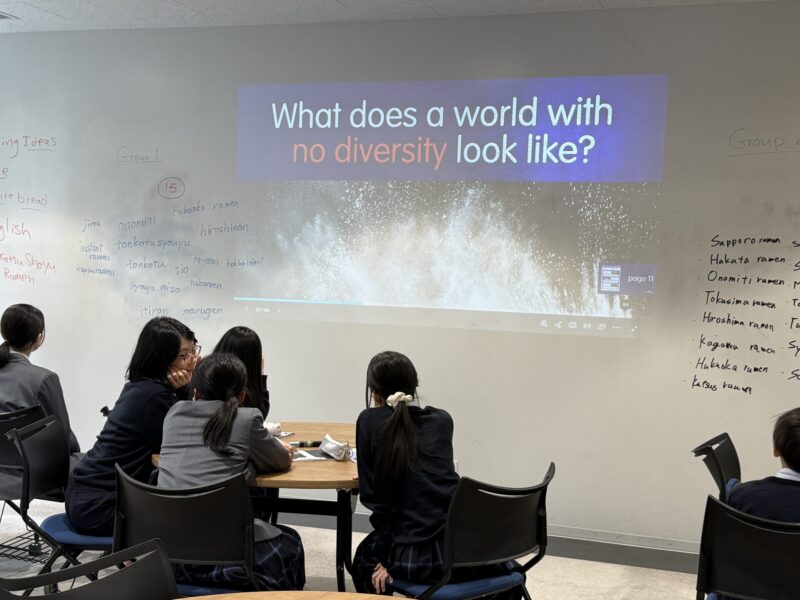 生徒たちは、「選択肢があるからこそ世界は豊かになる」「いろいろな違いがあることで、新しい発見が生まれる」と気づき、最終的に「多様性は可能性を広げる」という結論にたどり着きました。授業を通して「多様性」を考える良い活動となりました。
