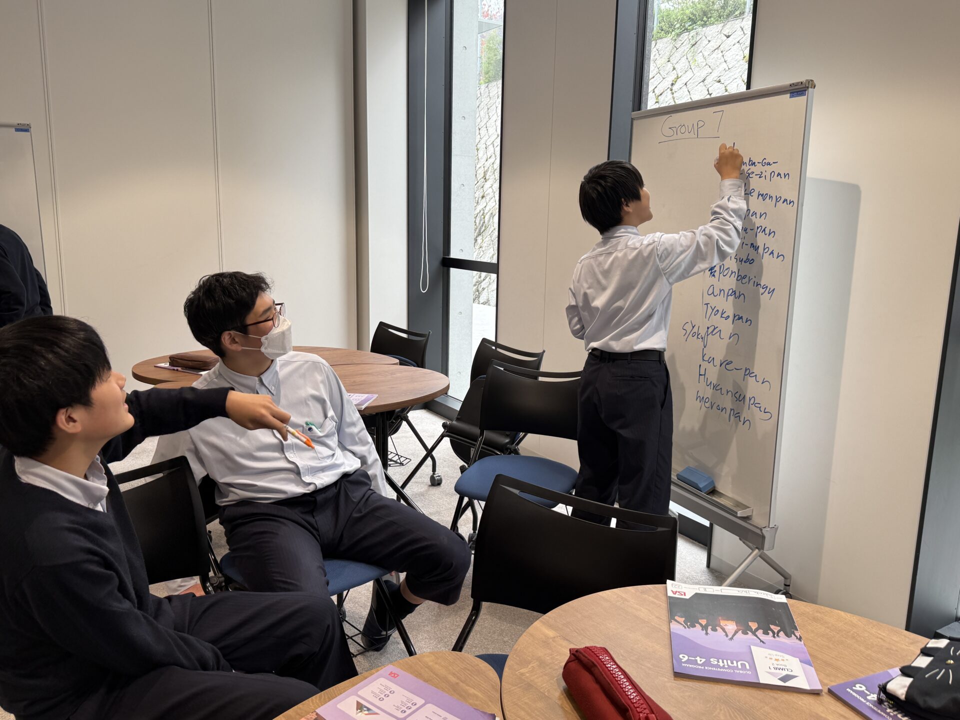 まず「色」「教科」「パン」「ラーメン」などのテーマをもとに、生徒たちは各テーマの知っているものをできるだけ多く書き出すゲームをしました。