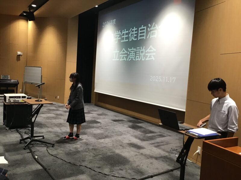 2025.11.17 行事 担当:福原 生徒が主役…続編 次期生徒自治会役員の立候補者及び推薦者による演説会と選挙が行われました。現在の生徒自治会会長挨拶から始まりました。選挙管理委員が司会進行、投票の誘導など生徒が主導した取り組みです。各候補者や推薦者も見事な演説ばかりでした。会場である協創ホールもいい緊張感の中で時間が流れていました。 演説や投票中、私たち教員は少し離れたところから見守っているだけで十分でした。新しいリーダーの誕生が今から楽しみです! 2023年中学ブログはこちら 2022年中学ブログはこちら