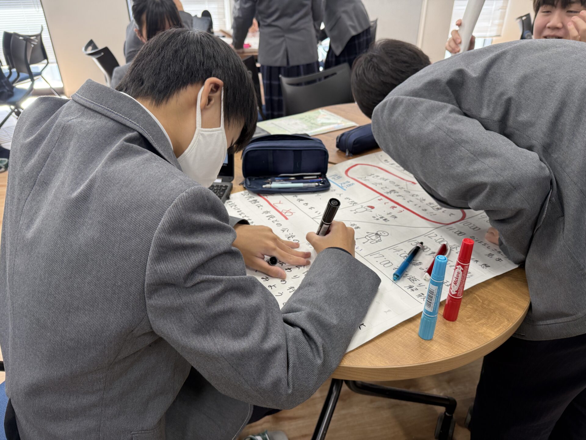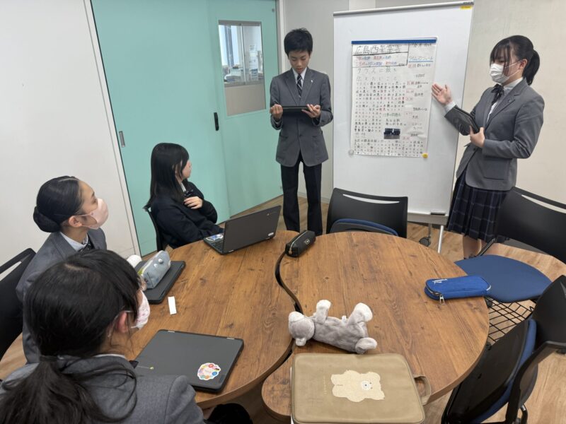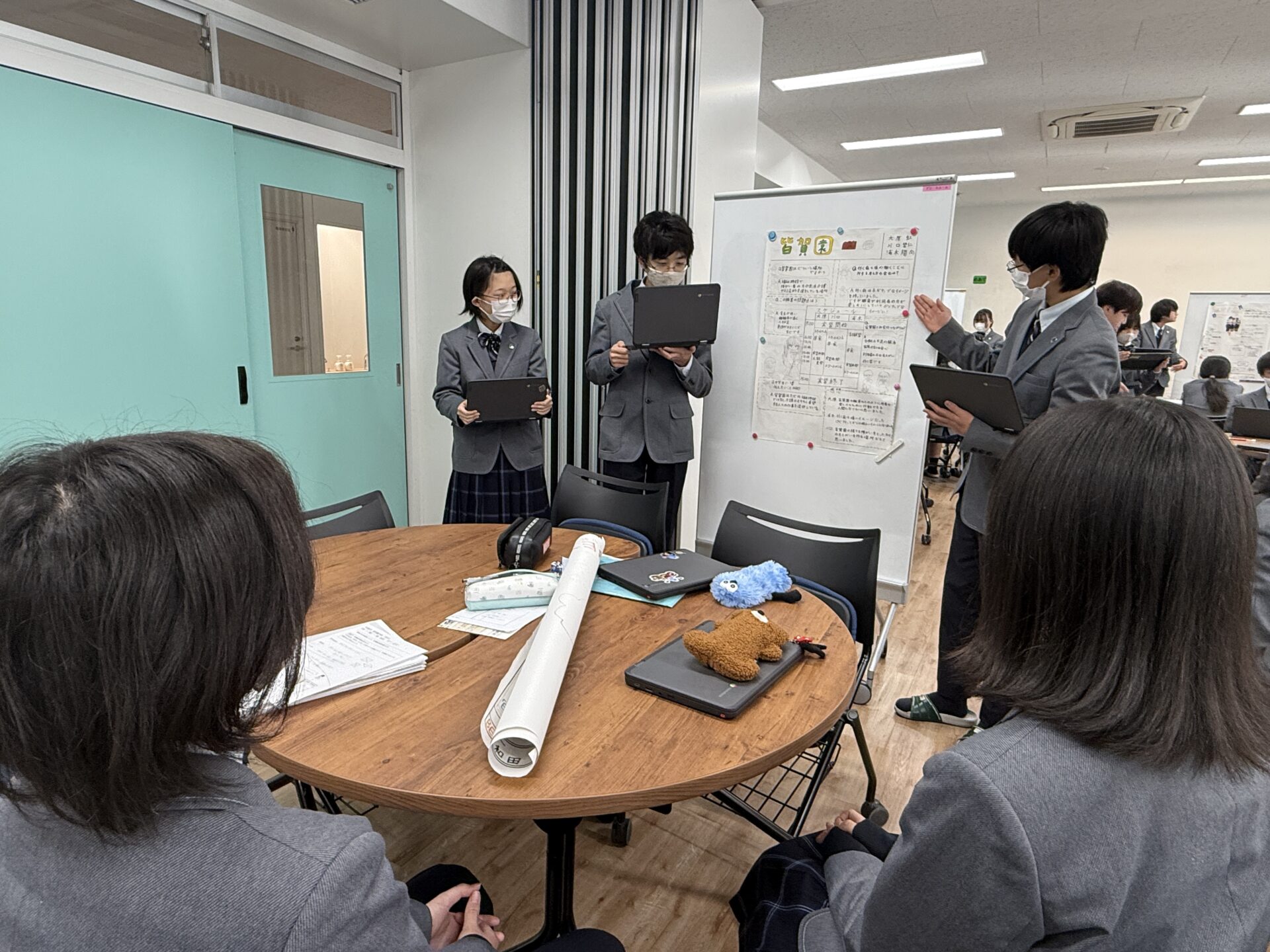 2025.12.09 学修 担当:富成 職場体験発表に向けて 来週の木曜日、中学1年生に向けて職場体験について発表します。本日の探究ではポスターセッションに向けて練習と準備を行いました。休校期間や期末試験週間と忙しい日程の中でポスターを完成させました。今日はグループ同士でお互いの発表を見て、アドバイスをもらい、原稿の修正をしました。1年生から取り組んできた職業観育成プログラムの集大成です。みなさんの発表を楽しみにしています。 2023年中学ブログはこちら 2022年中学ブログはこちら