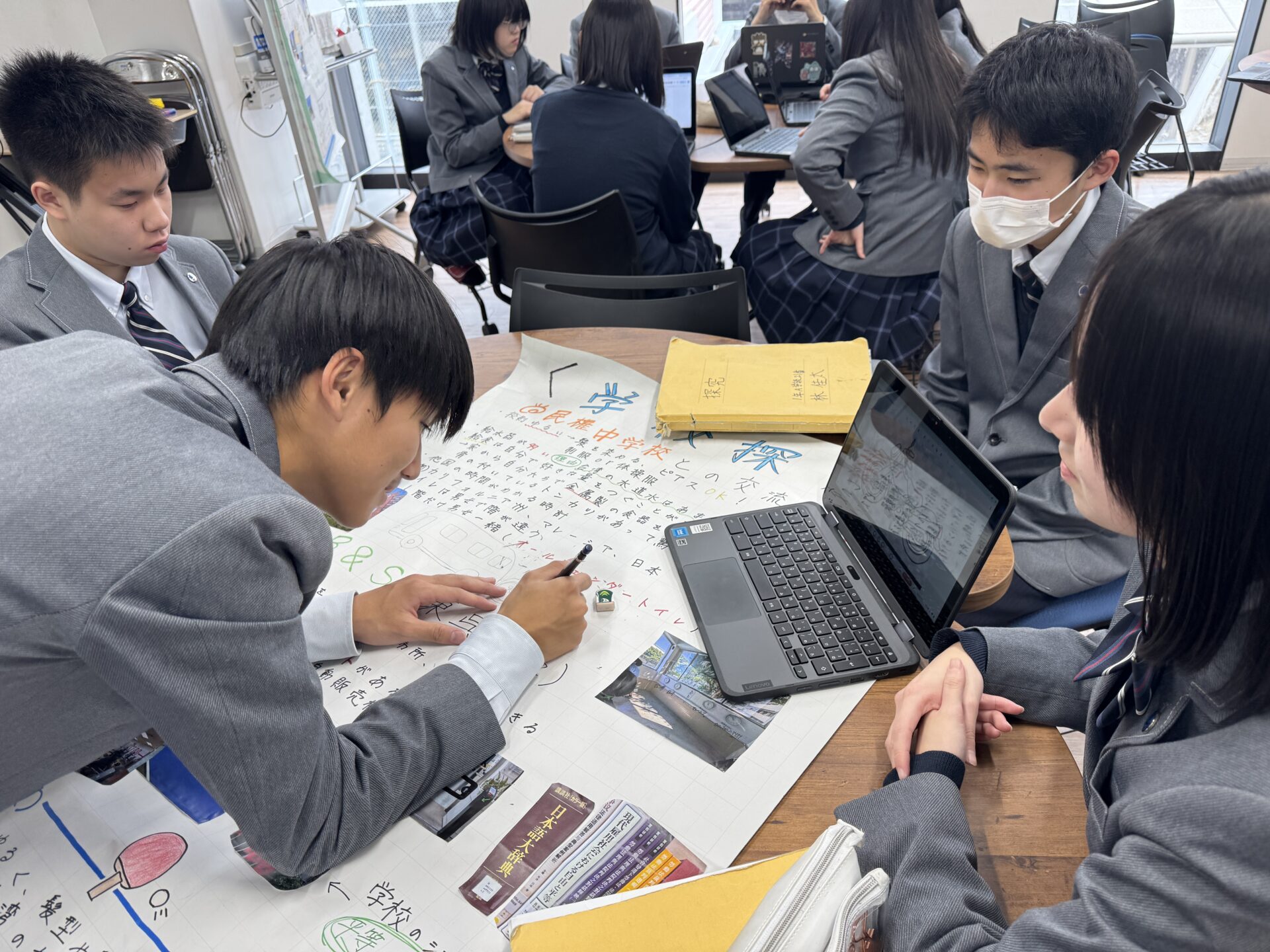 自分たちの調べたいテーマから事前の推測、実際に行ってみて初めて分かったことなどを1枚のポスターにまとめるのに苦労していました。発表原稿や紹介のチラシなども各班こだわりのものができているのではないでしょうか。事前の取り組みを含めると長期間にわたって活動してきました。教員からは多くのアドバイスをせず、これまでの自分たちの経験や先輩方のいいところを参考にしてポスター等を作成しております。