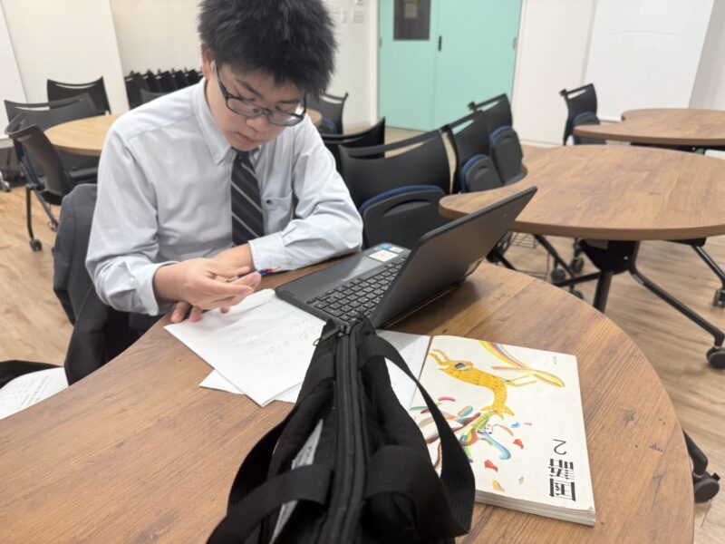 今日の放課後、グローカルームで静かに学習に取り組む生徒たちの姿が見られました。