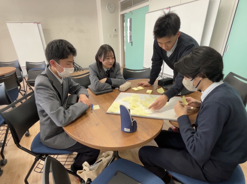 その後は、出てきたキーワードを関連のあるもの同士でグルーピングしていきました。正解がひとつではないからこそ、他の生徒の視点を取り入れたり、自分の考えを見つめ直したりできるいい機会になります。