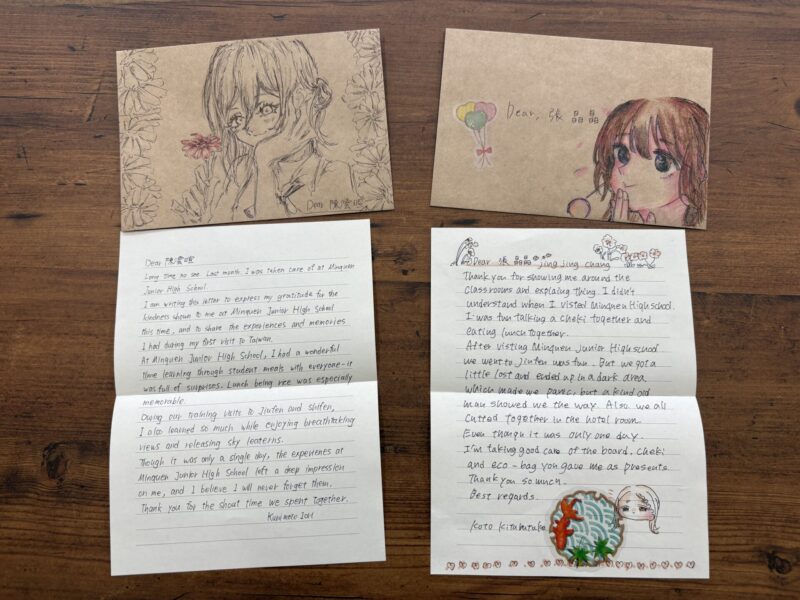 生徒たちは、民權中の生徒さんとの交流を通して、様々な学びを経験しました。価値観や文化、言語の違いはありながらも、しかしそれを超えて心を通わせることを実感できました。この経験は、これからの生徒の成長にとって、きっといい糧となるのではと思います。生徒の書いた手紙が台湾に到着するのが楽しみです。