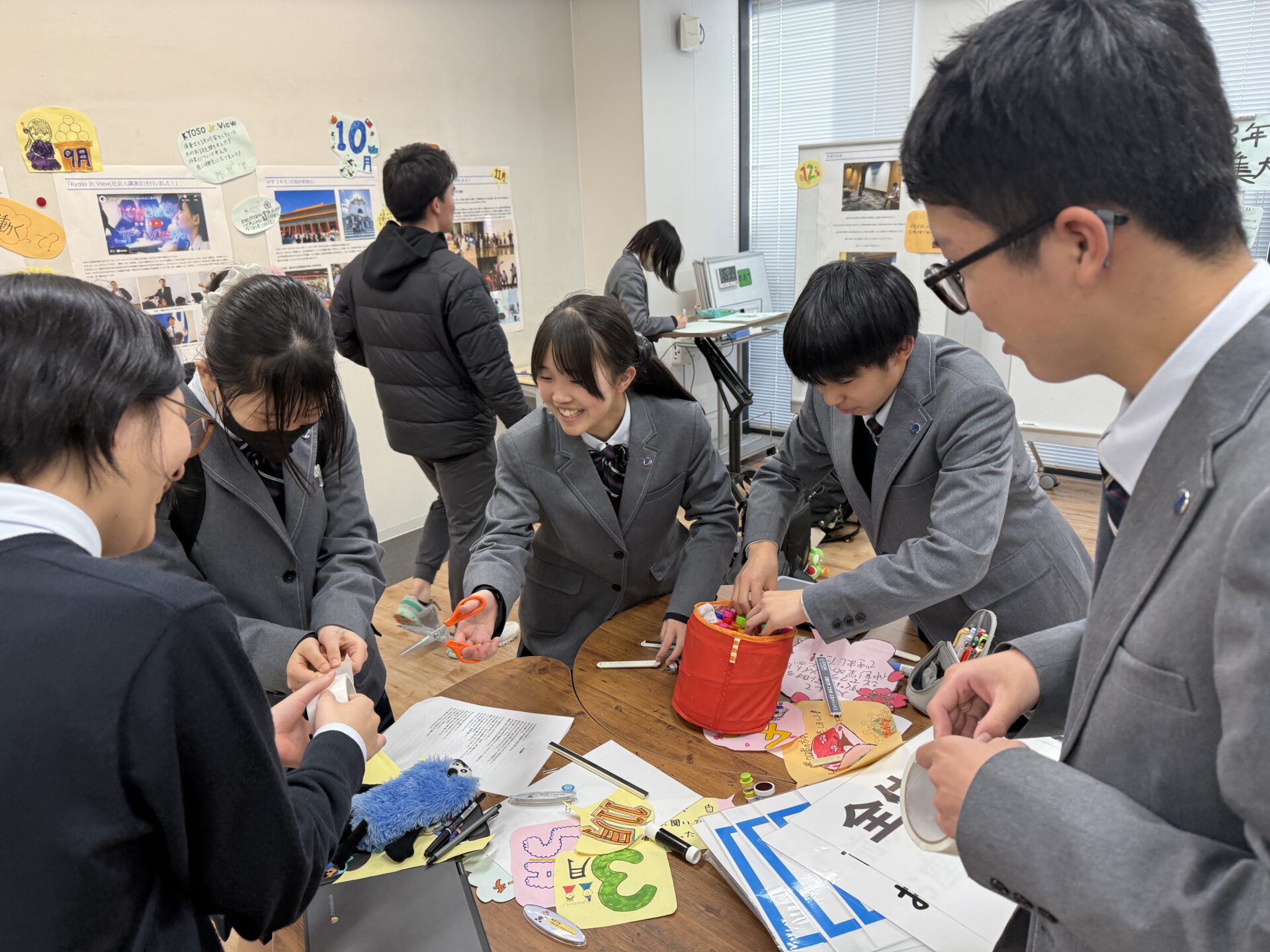 本日6限目の中掃除後、中学 生徒自治会のメンバーを中心にオープンスクールの準備が進められていました。