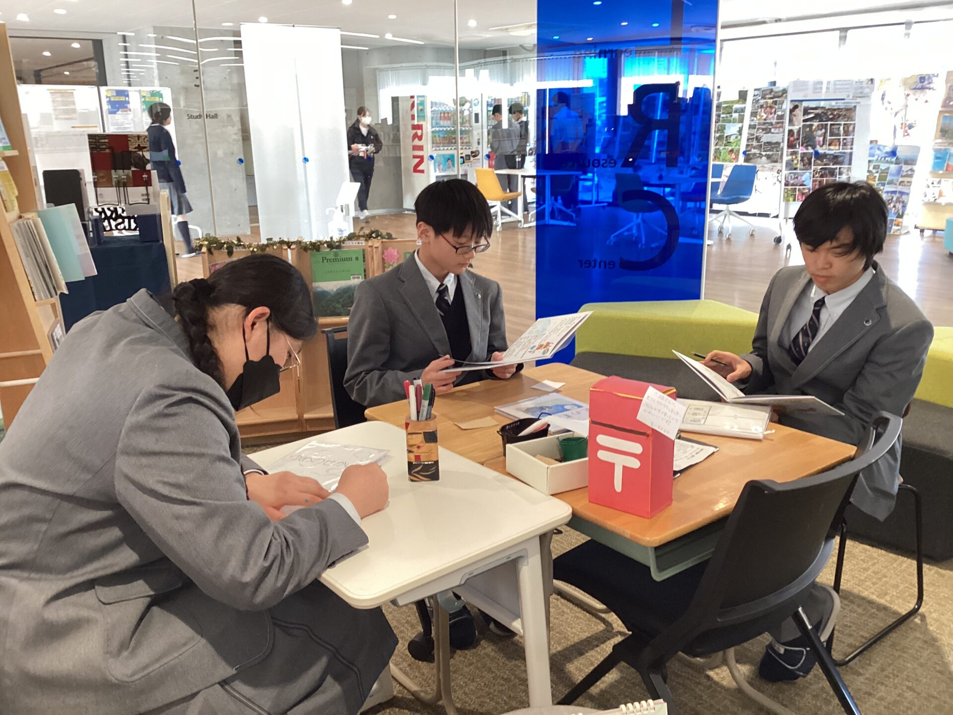 中学図書委員は、展示作品のそばに感想ポストを設置し、メッセージを呼びかけました。その結果、白岩校長先生や家庭科の石飛先生、高校図書委員、多くの在校生から心のこもったメッセージが寄せられました。