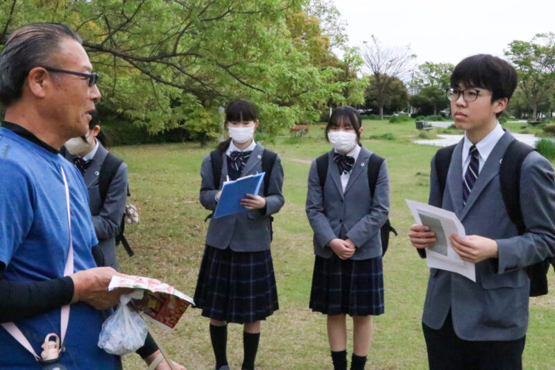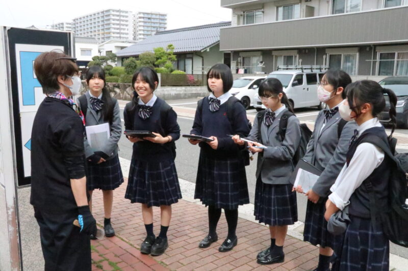 事前に生徒たち自身で決めた地域探訪のコースを調査していきます。生徒たちも積極的に地域の方々にインタビューしていきます。